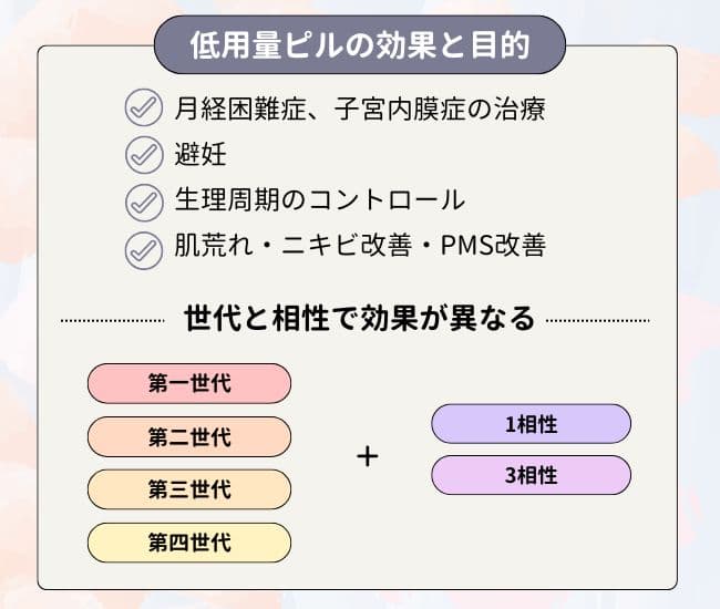 低用量ピルの世代別の目的や特徴