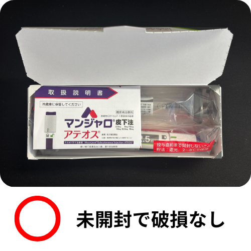 マンジャロは1箱=2本入りで、外箱以外に注射器本体はビニール袋で覆われています。