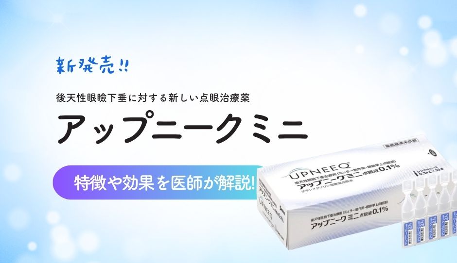これまで「手術しか方法がない」と諦めていたまぶたの悩みに対して、アップニークミニ点眼液は新しい光をもたらす治療薬と言えます。